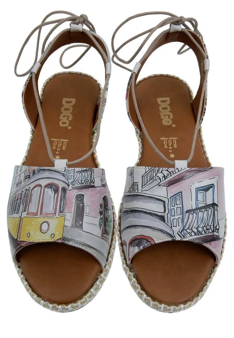Elevate your style and stand out! Hazel Model sandals are vibrant multicolored lace-up vegan leather sandals featuring Lisboa Design.