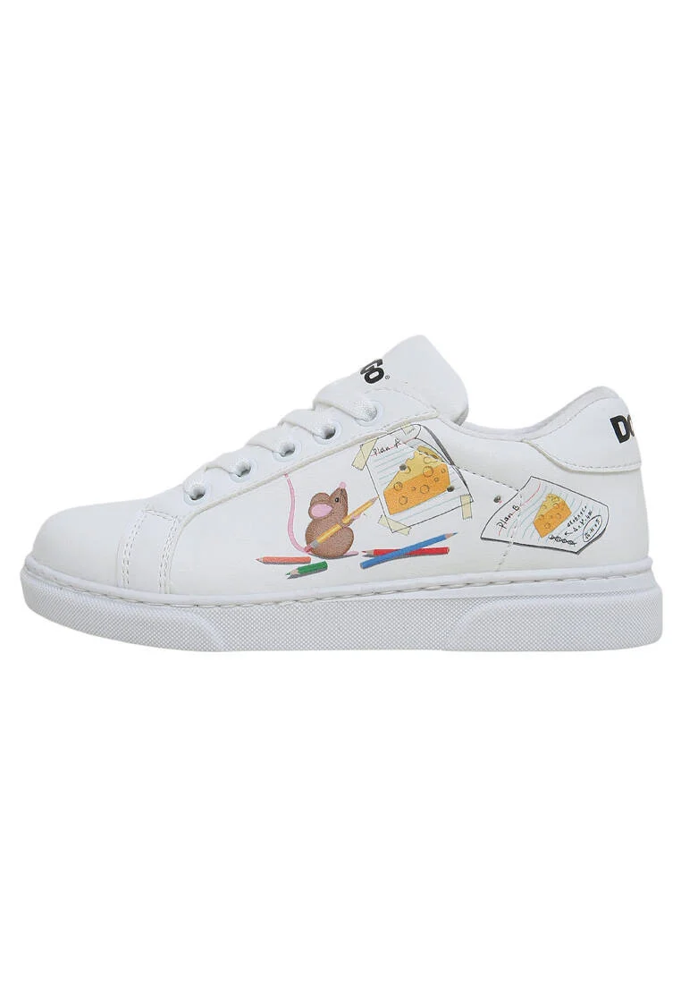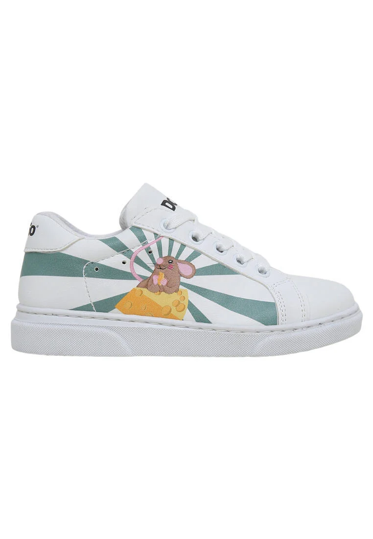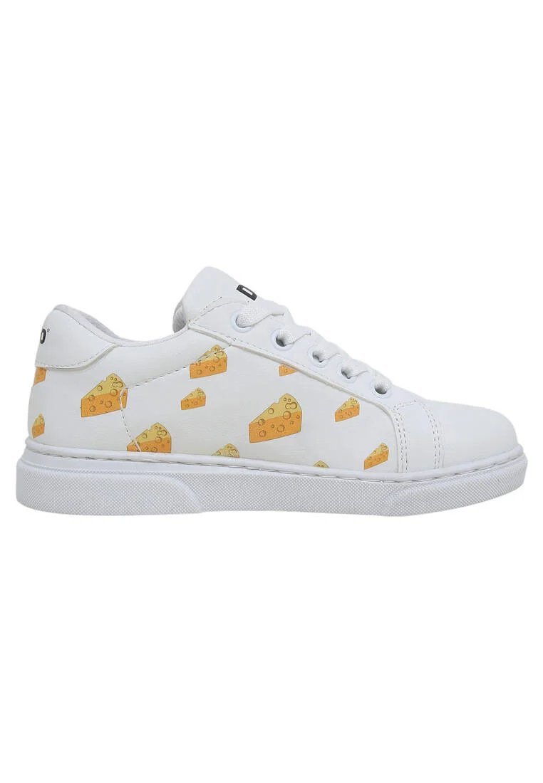You've found the stylish and eco-friendly children's sneakers you've been searching for! Our white sneakers featuring the "Mission Cheese Possible" design are made from durable and sustainable high-quality vegan leather. Ideal for both girls and boys,