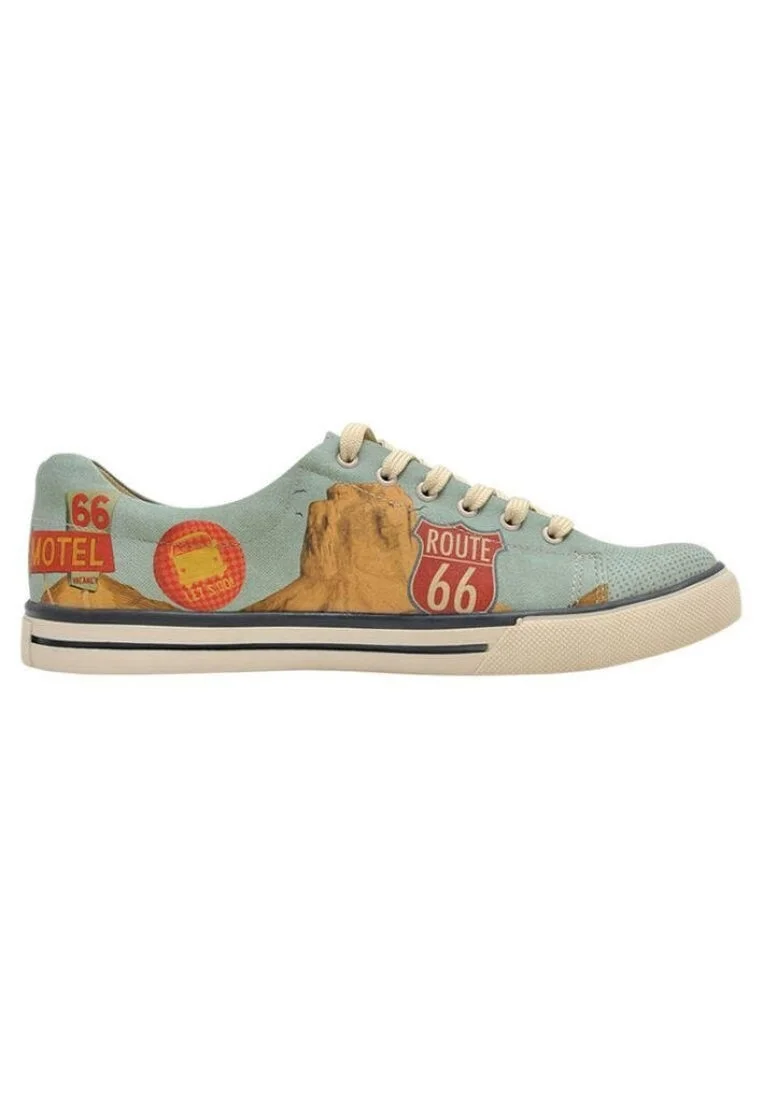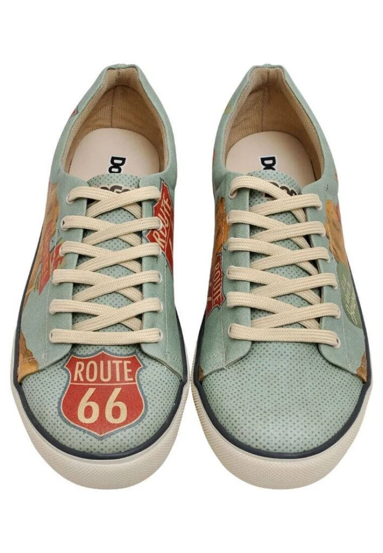 Time to express how you feel! We are your personalized storyteller. Men Sneakers model with the Route 66 print is at DOGO to let you show your unique style!