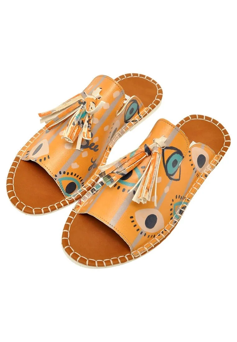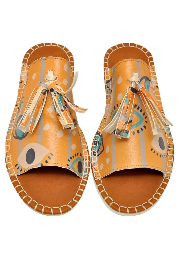 Women Vegan Leather Orange Slippers - See You Design