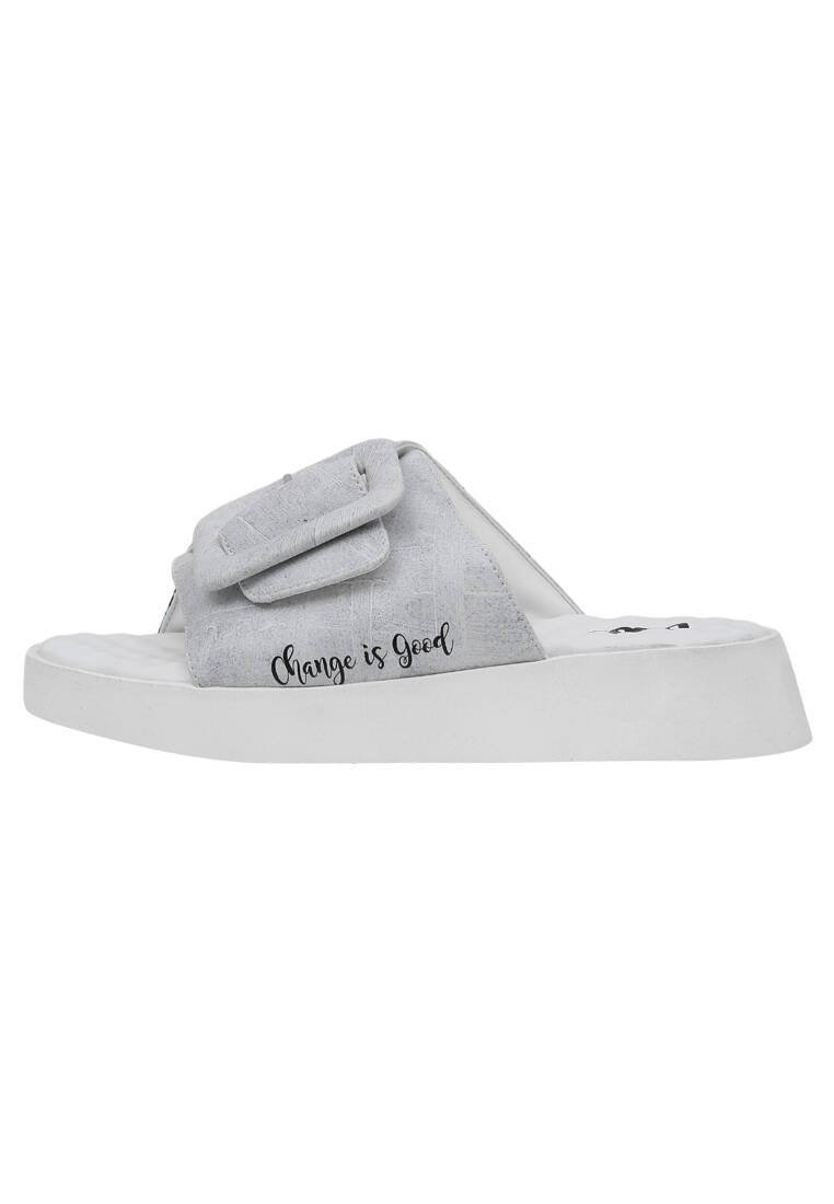 Change is Good Design Beige Slippers. Crafted with the finest quality vegan leather, these slippers offer a cruelty-free alternative without compromising on fashion.