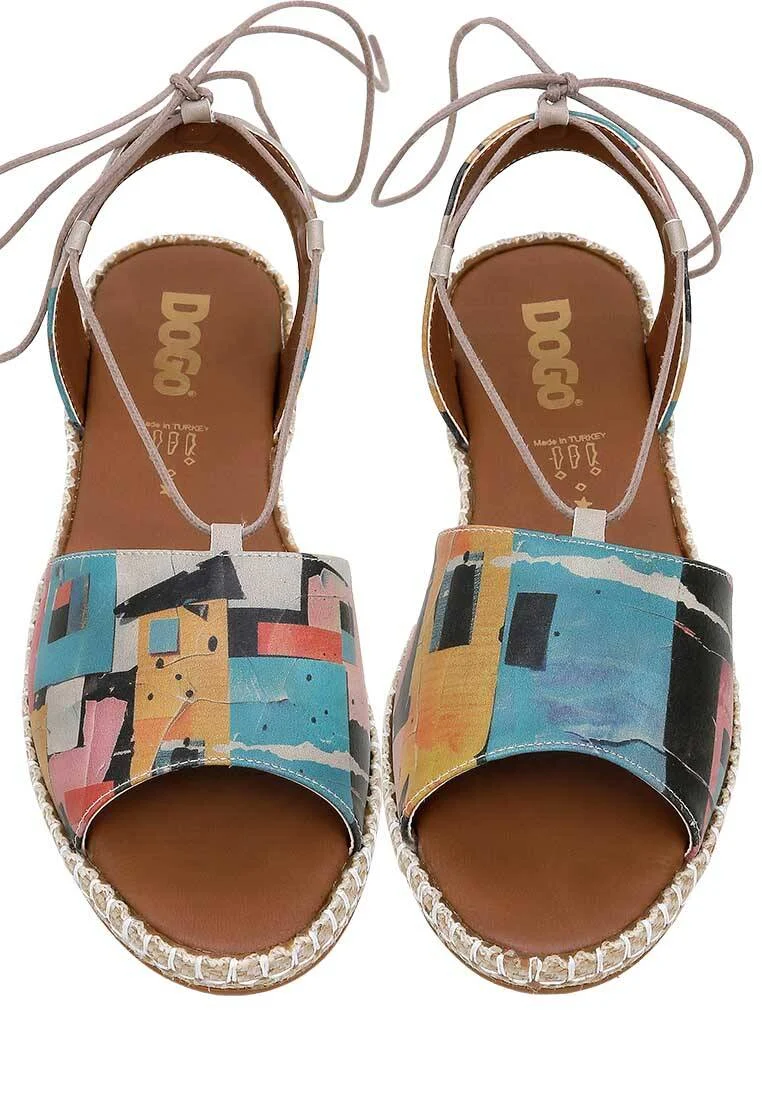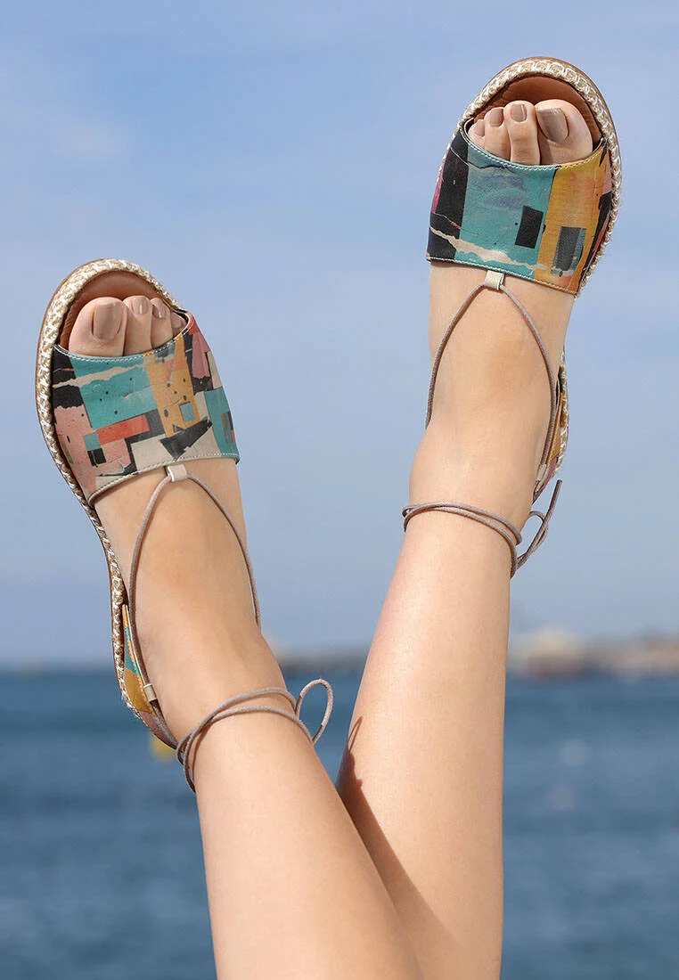 Bold details for a modern look! Women Vegan Leather Multicolor Lace-Up Sandals – Block Houses Design, a Hazel model, is a 100% vegan sandal, combining sustainability with a timeless aesthetic.