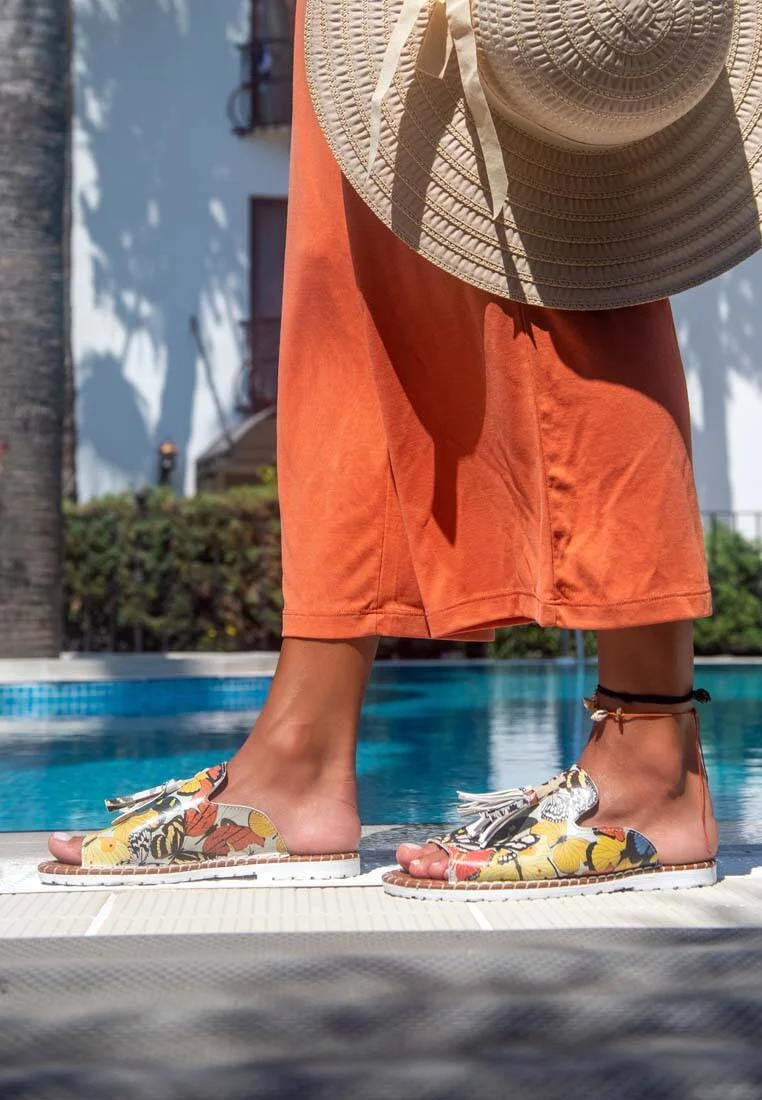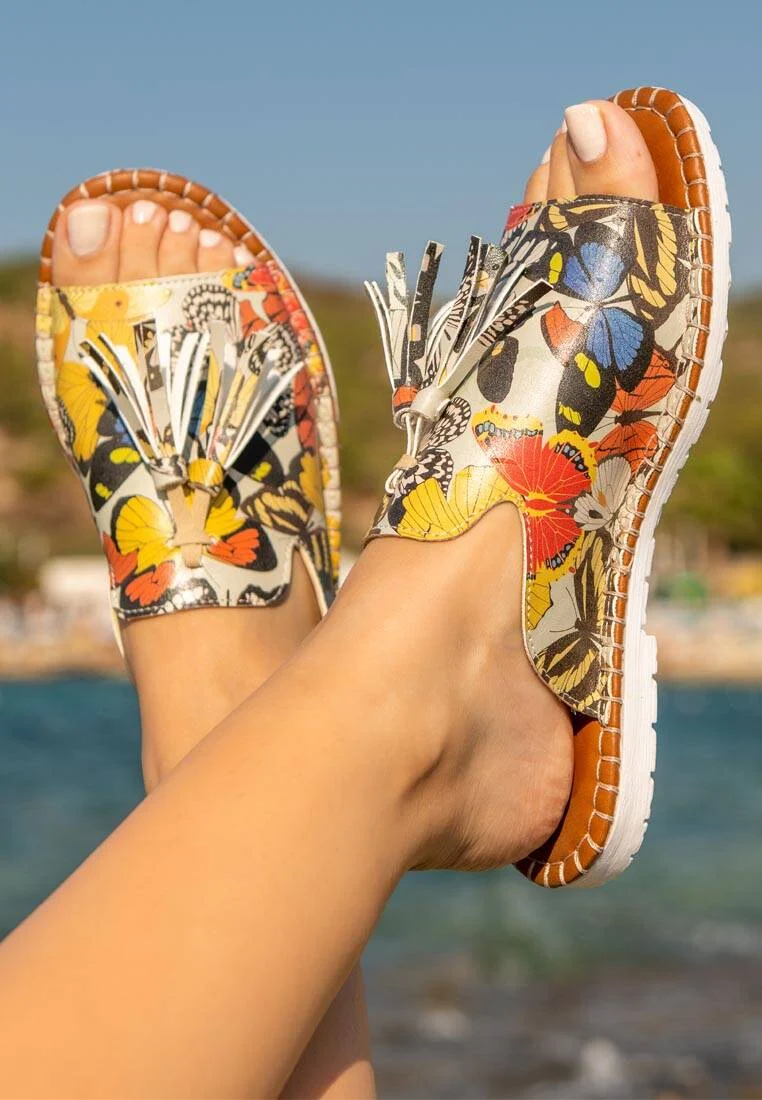 Step into comfort and style with our Women's Vegan Leather Multicolor Slippers, featuring the "Grace comes in many colors" Design.