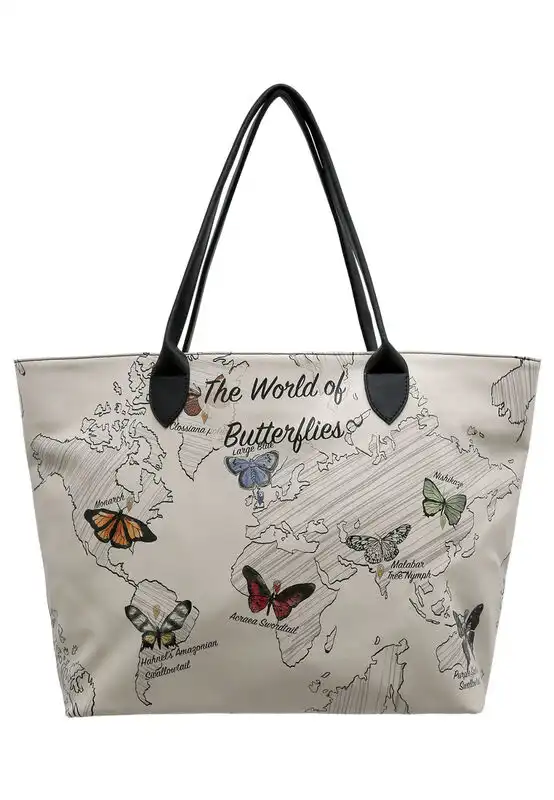 Women's Beige Vegan Leather Shoulder Bag - Butterfly World Design